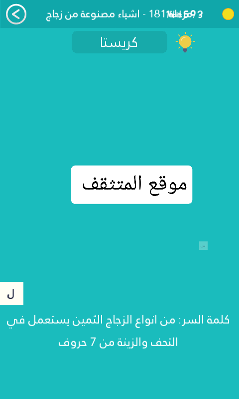 كلمة السر هي من انواع الزجاج الثمين يستعمل في التحف والزينة من 7 حروف مرحلة 181 كلمة السر هي من انواع الزجاج الثمين يستعمل في التحف والزينة مكونة من 7 حروف كلمة السر هي من انواع الزجاج الثمين يستعمل في التحف والزينة من سبعة حروف كلمة السر هي من انواع الزجاج الثمين يستعمل في التحف والزينة من ٧ حروف